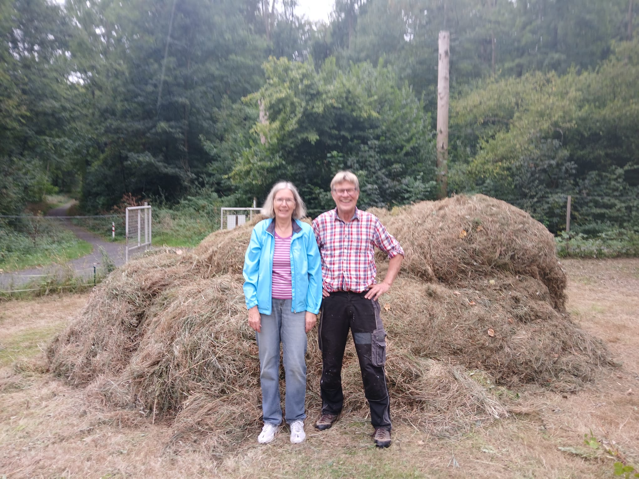Anschließend wurde das Heu sorgfältig zusammengerecht und für den Abtransport vorbereitet – ein wichtiger Arbeitsschritt, denn das Ziel ist eine sogenannte „abgemagerte“ Wiese. Nur wenn der Grasschnitt entfernt wird, können sich langfristig nährstoffarme, aber artenreiche Pflanzengesellschaften entwickeln – ein wertvoller Lebensraum für viele Insekten und andere Tiere.