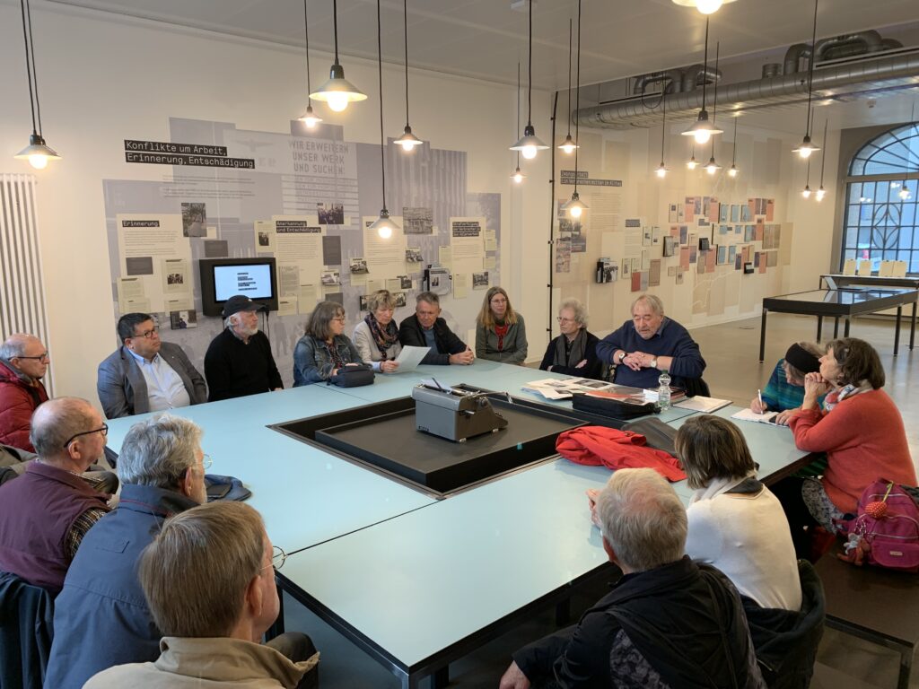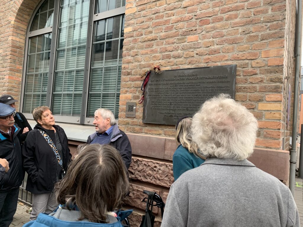 Im Oktober besuchten wir den Geschichtsort Adlerwerke im Frankfurter Stadtteil Gallus – eine Gedenk- und Bildungsstätte, die über das KZ-Außenlager „Katzbach“ sowie über Zwangsarbeit in Frankfurt informiert. Thomas Sock nahm uns mit auf eine eindrucksvolle und zugleich bedrückende Zeitreise in den Alltag während der NS-Zeit im Gallusviertel. Durch die anschaulich gestaltete Ausstellung in den Adlerwerken sowie den anschließenden Rundgang durch das Viertel erhielten wir einen intensiven Einblick in die oft unmenschlichen und gefährlichen Lebensumstände vieler damaliger Bewohner.